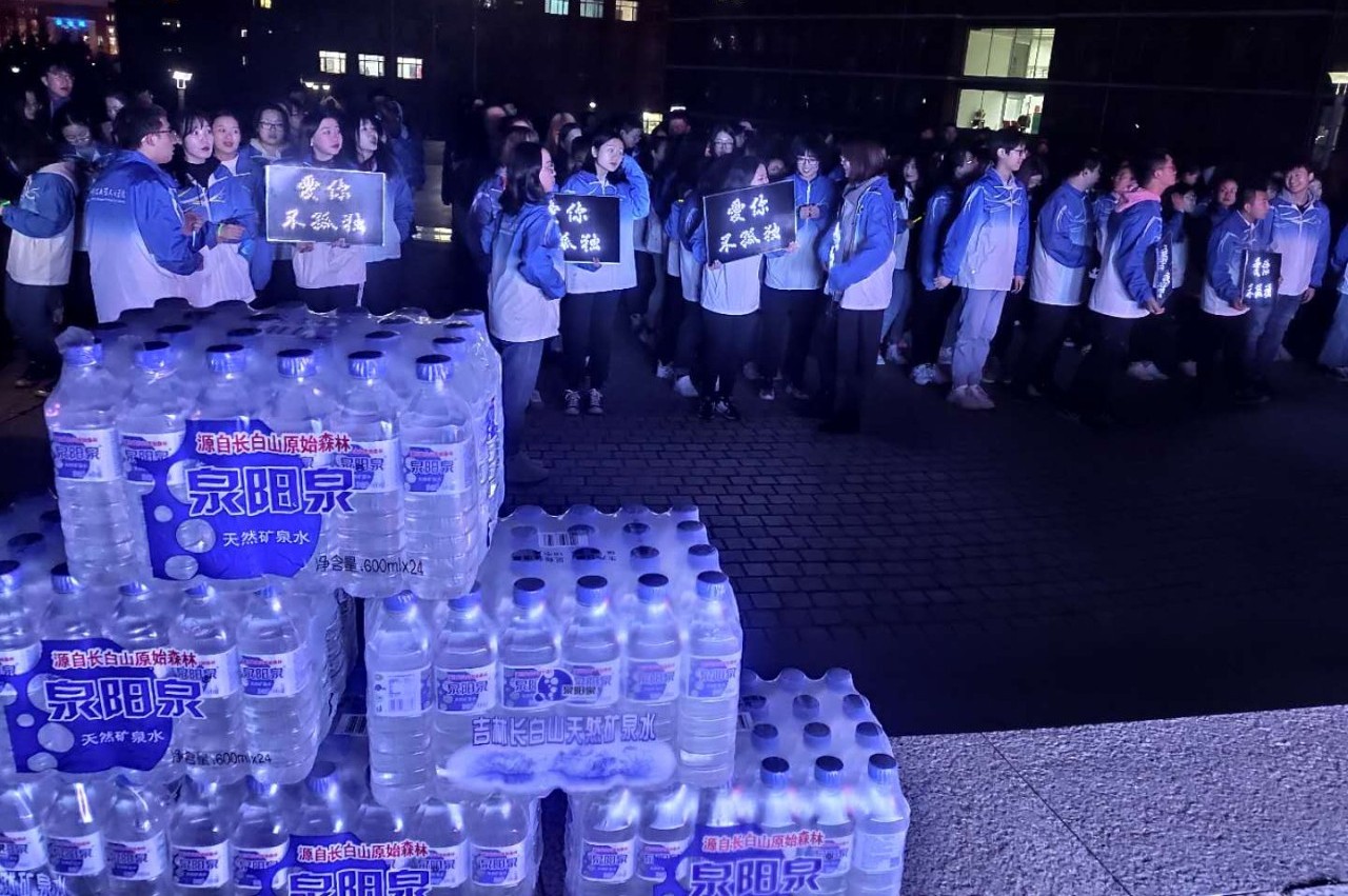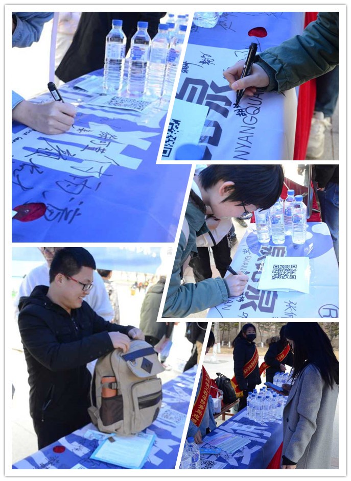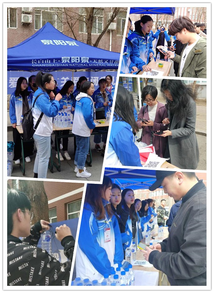 四月的長春雖已步入了春天,但天氣依舊寒冷,盡管志愿者們凍得瑟瑟發(fā)抖,但每個成員都積極地參加到活動中,將源自長白山的泉陽泉天然礦泉水送至每個同學(xué)手中。